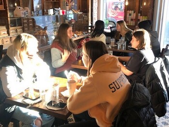 Die 1HS bestellt auf Französisch im französischen Café La Mercerie